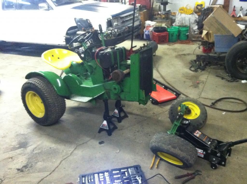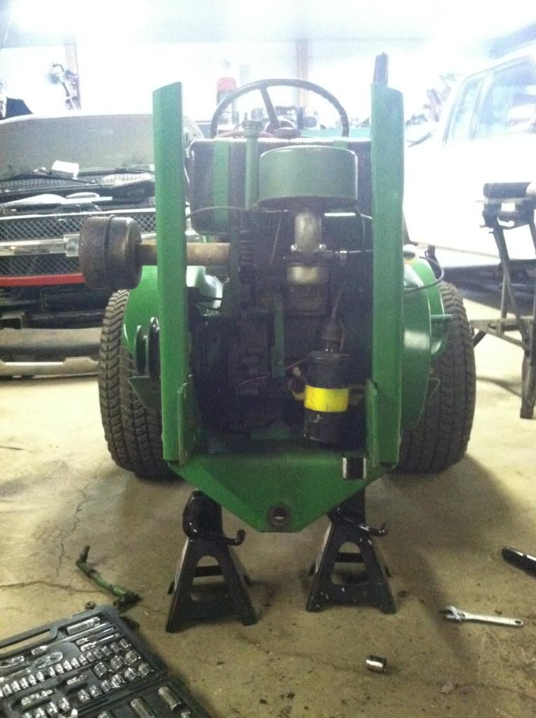 First jack up front of tractor and place 2 jack stands under the tractor,