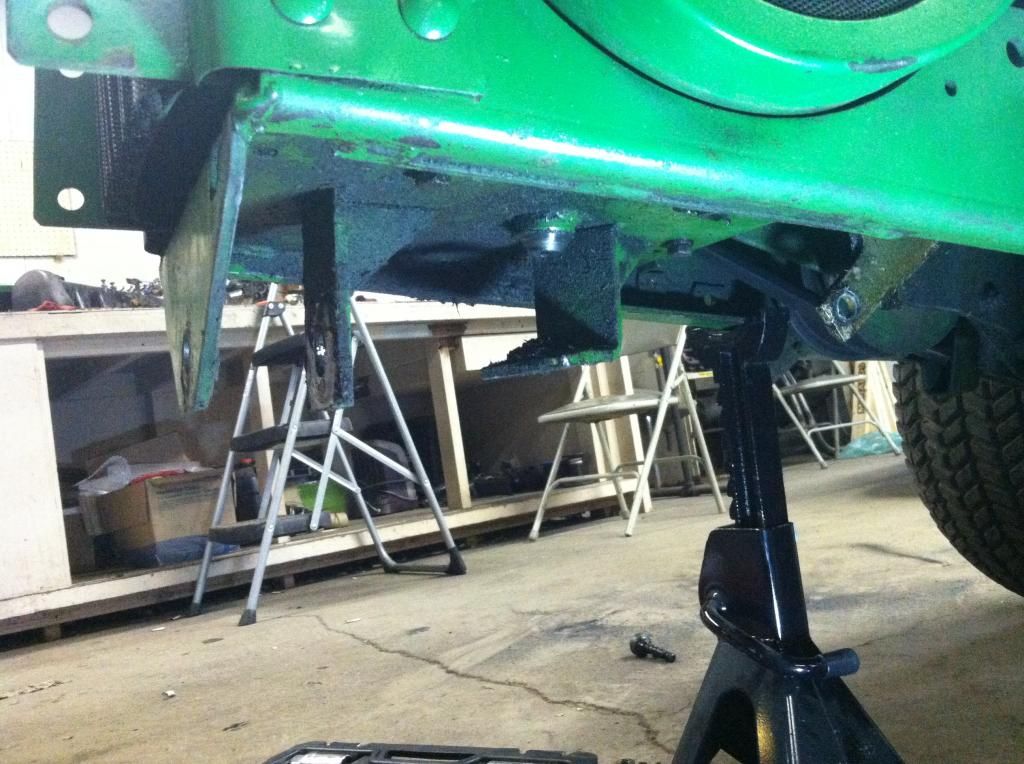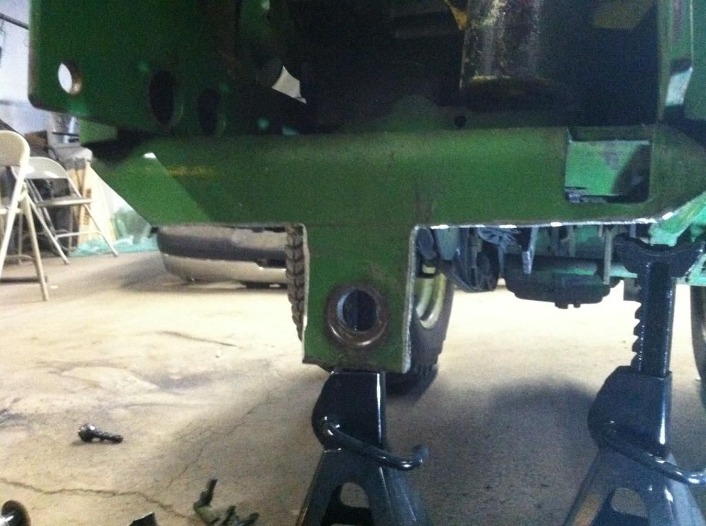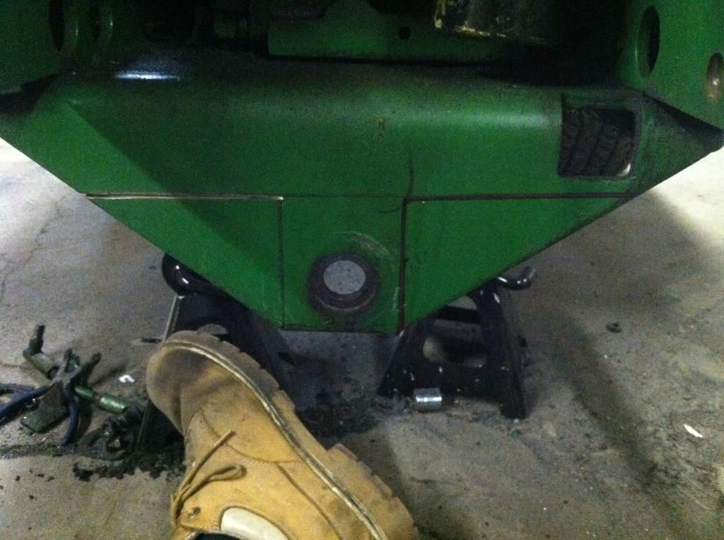 Next, there are 2 brackets under the tractor that need to be removed, i used a swazaw and grinder, but a torch could be used just be careful.