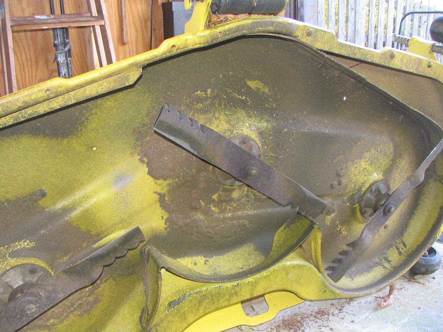I usually scrape a couple of areas I can reach with a wooden shim after each mowing. I wait until I sharpen the blades (about every 20 hours) to scrape the whole deck. I don't have my power washer out at my acreage, or I would power wash it, grease the spindles, and run it a bit. Is a power wash advisable as long as you grease it an let it dry?